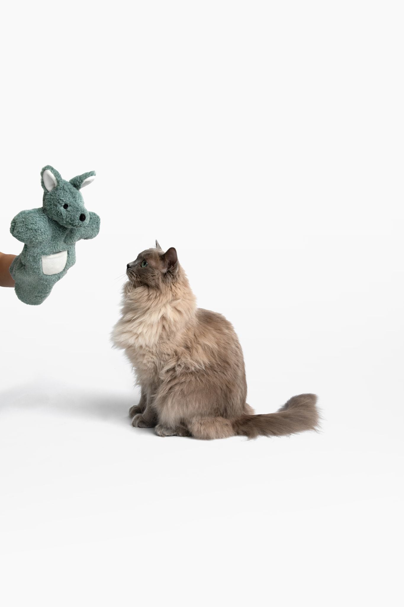The Paw Puppets™ Cat Toy is your ultimate solution for safe, interactive play with your cat! Crafted in the shape of an adorable kangaroo with irresistible crinkly ears, this plush toy is designed to captivate your feline’s attention for hours. Its protective inner layer keeps your hands safe from sharp claws and teeth, while a built-in treat pocket lets you add catnip or treats for extra excitement. The kangaroo is the perfect playmate for your kicking kitty. The toy mimics littermate play and keeps single kittens entertained; it delivers endless fun and bonding moments with your furry friend!
